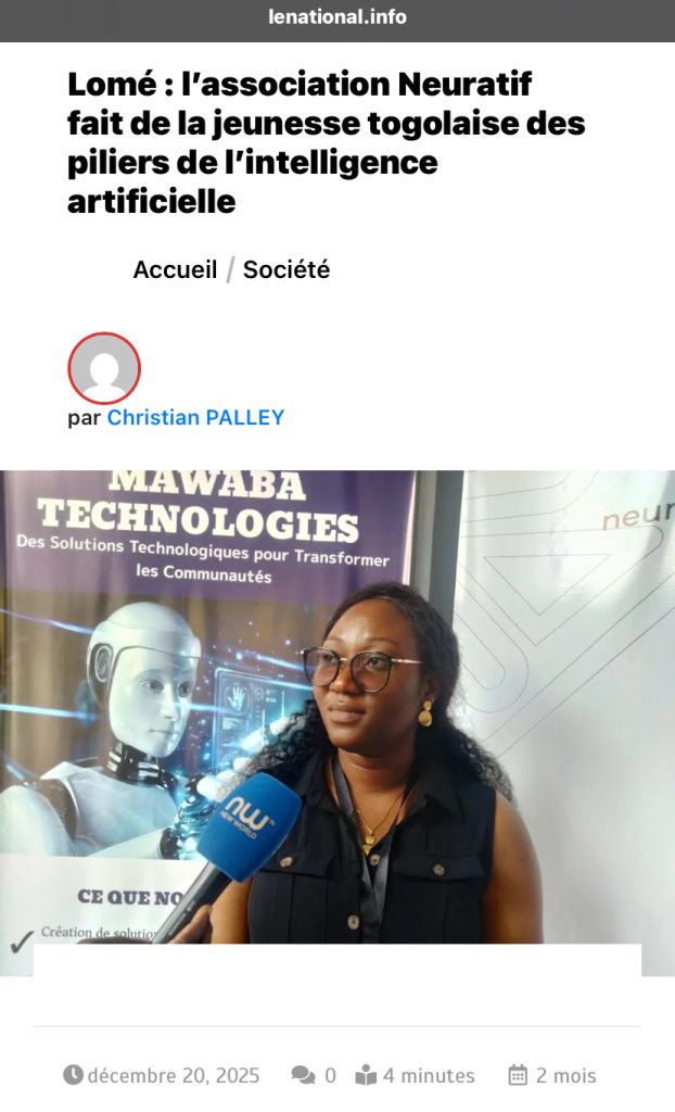 Source : Par Christian PALLEY , le 20 Décembre 2025 > https://lenational.info/lome-lassociation-neuratif-fait-de-la-jeunesse-togolaise-des-piliers-de-lintelligence-artificielle/
